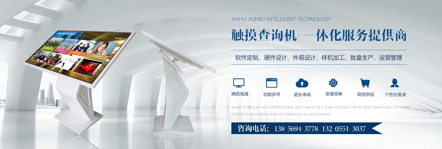 迅博智能 位于中國科教城---合肥市,和經(jīng)濟開發(fā)區(qū)與高新區(qū)毗鄰,地址合肥市肥西縣湯口路與皋城路交口人民萬福產(chǎn)業(yè)園一期12棟東側,是一家IT領域的高新技術企業(yè),全心全意服務于信息化建設,做專業(yè)的信息化提供商,全力打造信息時代新模式。 迅博智能 主要從事觸摸屏、觸摸顯示器、OLED柔性觸摸屏、觸摸查詢一體機系列產(chǎn)品及觸摸顯示互動體驗軟硬件產(chǎn)品;智能排隊叫號、網(wǎng)上預約排隊叫號、安康碼皖事通取號系統(tǒng);曲面屏、OLED 屏幕、柔性屏、LCD液晶大屏拼接系統(tǒng);落地式、壁掛式單機版網(wǎng)絡版室內(nèi)外廣告機及數(shù)字標牌廣告信息發(fā)布系統(tǒng);室內(nèi)外LED電子格柵透明屏、單雙色、全彩電子大屏;各類辦事營業(yè)廳:公積金...